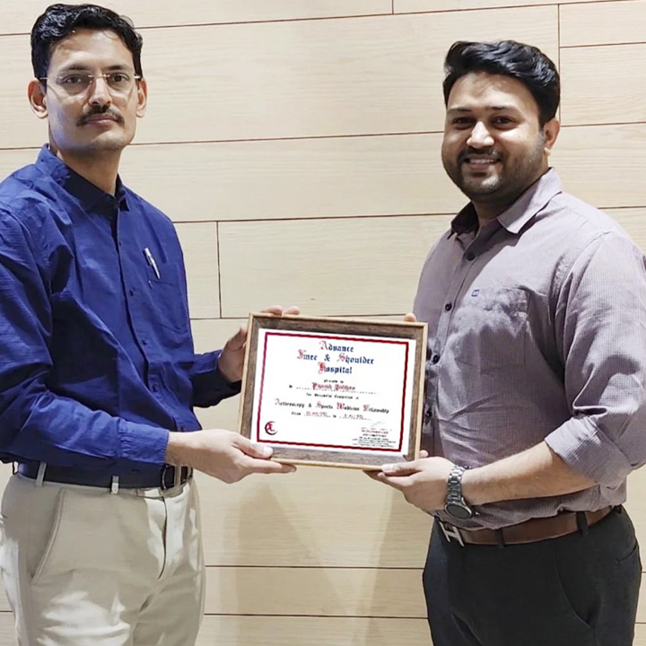 Driven by his passion for advancing his knowledge and skills, Dr.Piyush underwent extensive training both nationally and internationally. He completed a Fellowship in Arthroscopy and Sports Medicine from Ahmedabad under the mentorship of Dr. Prathmesh Jain. Seeking to broaden his expertise even further, he pursued an International Fellowship in primary and revision Knee and Shoulder Arthroscopy at the esteemed University of Milan, Italy, under the guidance of Prof Dr. Pietro Randelli. Additionally, he enriched his practice with a Fellowship in Hip and Knee Arthroplasty (Joint Replacement) in Mumbai